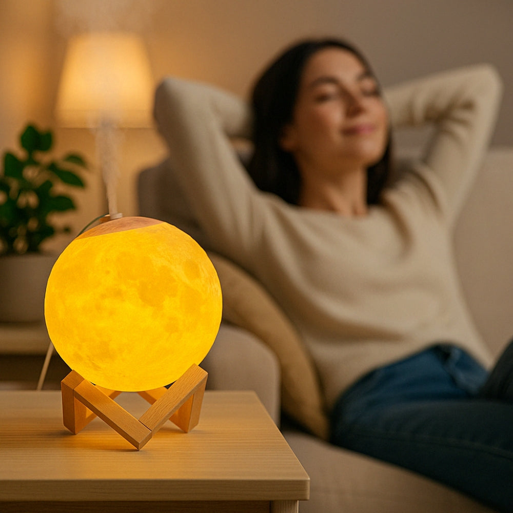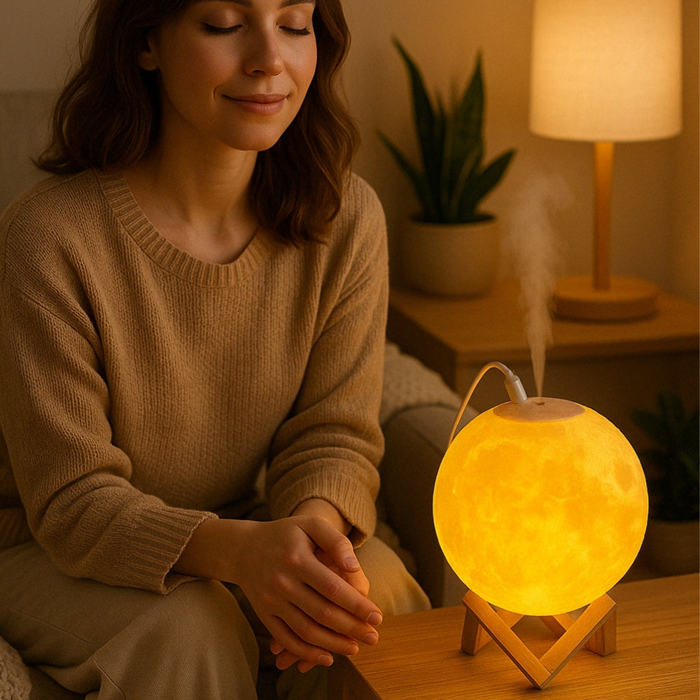 Lámpara Humidificadora 3 en 1 – Luz Nocturna, Difusor y Decoración Lunar